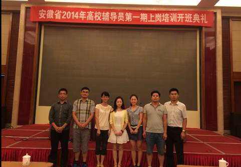 7月12日-17日,由省教育厅、教育部高校辅导员培训和研修基地(安徽师范大学)举办的安徽省2014年高校辅导员第一期岗前培训班在芜湖举行。我校组织的7名新进辅导员和省内其它高校的282名辅导员参加了此次培训。