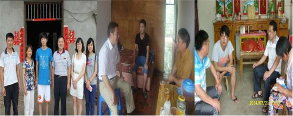 在走访潜山县黄柏镇桂同学家庭时感受颇深,家访小组从镇上走了将近一个小时才抵达该同学家中。他家有两间破旧的房子,屋内没有一件电器。家里姐弟四人,目前有三人都在读大学,父母长年在外打零工勉强维持生活。穷且益坚,桂同学每年寒暑假都在外打工,努力积攒着生活费。当家访老师向他的母亲介绍学校的相关资助政策和他在校良好表现时,这位平凡的母亲饱含着激动的泪水说道:我们只听说过小学和中学老师家访,确实没想到大学老师也能到家里来走访!虽然我家的孩子们得很争气,三个孩子都在读大学,但我和孩子她爸都感到对不起孩子。安徽理工大学每年都给孩子发放4000元助学金,为我家减轻了太多的负担,真的太感谢国家和学校政策对我们的帮助了。家住淮北市濉溪县刘桥镇的李同学父亲早年去世,母亲一人抚养他长大,生活非常不易,性格内向,也是国家助学金的获得者。辅导员一直觉得他就是个只会学习的的普通孩子,但是他在家里一个人照顾体弱多病的母亲,而且各项家事做得井井有条,辅导员心灵受到很大地震撼。该生母亲说,他从很小就非常自立,家里的大小事都是他一个人挑起的,而且在课余时间还打零工养家。辅导员事后说:没想到这个平凡的、毫不起眼的孩子,竟然蕴含着这么巨大的能量,对单亲家庭的学生,我们辅导员确实应该努力创造条件,让他们能感觉到集体的温暖,在爱的天空中享受人间的真情。当学校家访小组带着慰问品辗转两个多小时来到阜阳市行流镇的郭同学家中时,他的母亲眼睛湿润地告诉家访小组:2005年一场车祸从此彻底摧毁了原本清贫但平静的生活。车祸中,大女儿重度残疾,瘫痪;二女儿受到惊吓得了精神疾病,常年在医院治疗,孩子父亲绝望得去跳河被救下,她自己也患有严重疾病,去年多谢学校给予的大力支持和照顾。2012年以来,郭同学每年都获得了国家助学金和学院“土木年华”助学金。除此以外,辅导员老师还以“一名共产党员”的身份给其家乡基层人民政府写信,帮助其家庭顺利申请到了农村低保。