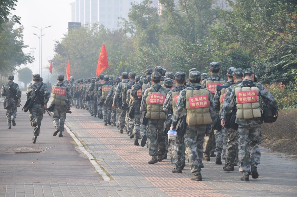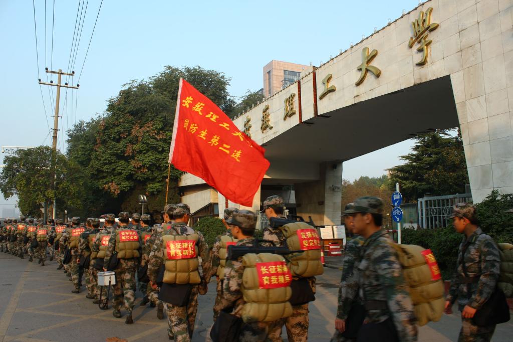 10月18日上午7时30分,伴随着南京军区驻校选培办辛崇波主任的一声号令,安徽理工大学132名国防生,身背行囊,开始了“励志—2014”野外徒步行军拉练活动。本次拉练全程36公里,旨在锤炼国防生军人作风,塑造国防生强军之魂。选培办辛崇波主任、金绍启副主任,马龙和张九鼎干事以及学生处、保卫处、校医院相关老师一路随军前行。