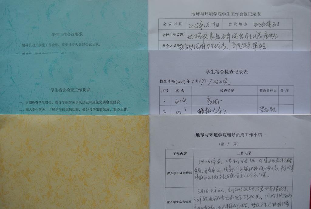 推行学生工作精细化管理以来,学院辅导员的工作指向更为明确,辅导员的工作能力和工作效率显著提升,促进了辅导员专业特长的发挥,有利于辅导员个人的成长。《地球与环境学院辅导员工作摘要》、《地球与环境学院学生工作摘要》、《地球与环境学院辅导员周工作小结》也成为了学院辅导员工作目标的指南针、工作内容的记录册、工作情感的交流站、精细化工作经验的展览馆。学院将坚持和推进学生工作精细化,以精心的态度、精确的把握、精致的过程,进行细心的教育、细心的辅导、细心的服务,真正把教育做具体、做扎实、做出成效。