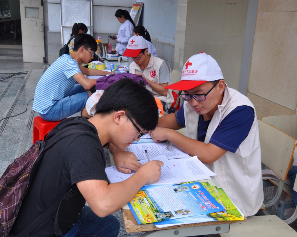 同学们参加义务献血