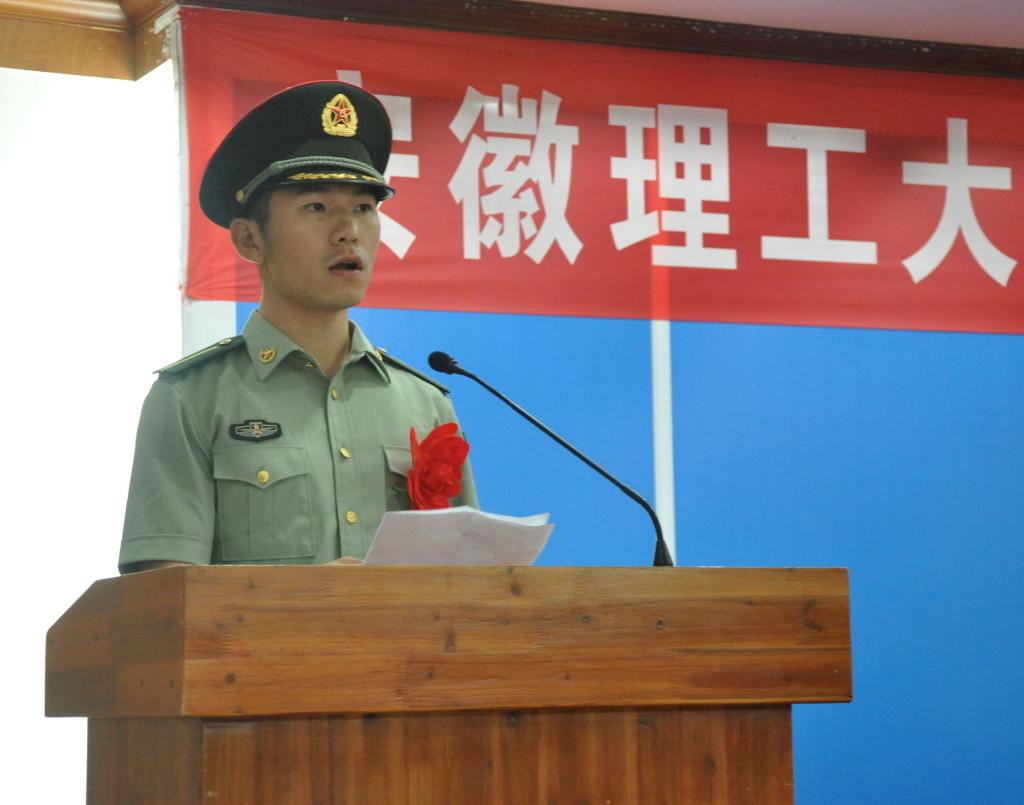 会上,毕业国防生代表张良舜、在校国防生代表刘晚峰和大学生代表徐通分别作了发言。