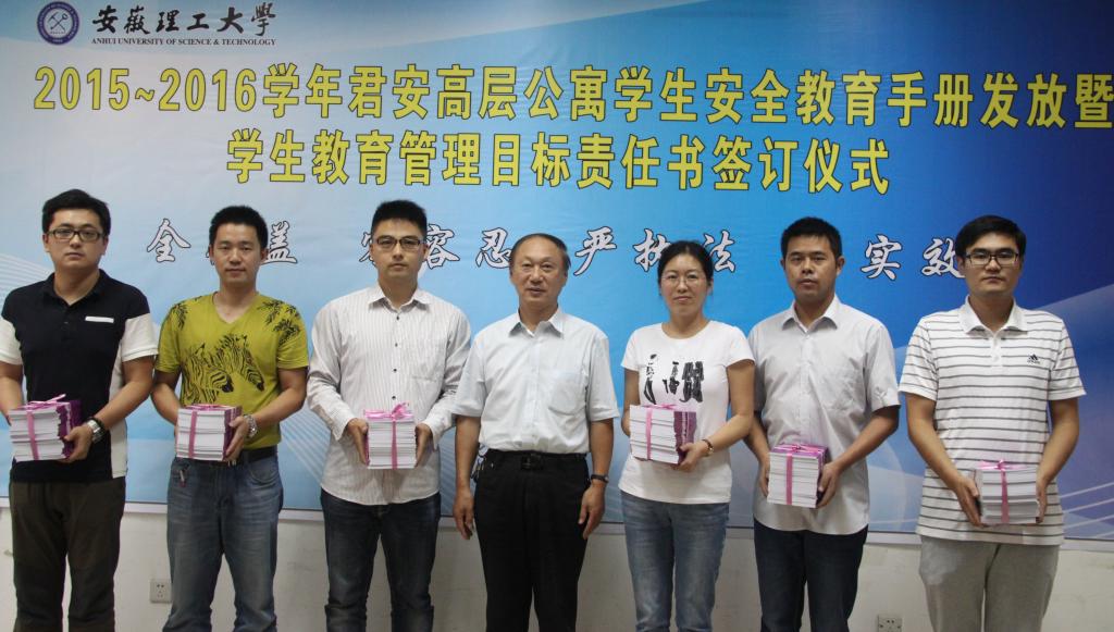 2015年9月23日,学校在大学生素质教育中心会议室召开了君安高层公寓学生教育管理工作会议,部署新学期君安高层公寓学生安全教育管理工作,发放了《学生安全教育手册》并与新入住高层公寓学生辅导员签订了《学生教育管理目标责任书》。副校长叶醒狮出席会议并讲话。学生处处长田中良主持会议。