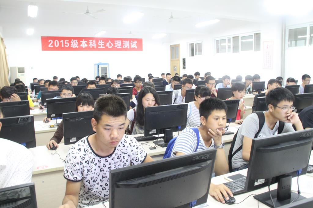 我校2015级新生心理健康普查工作从9月20日起开始,历时5天,共计5517名新生参加了本次普查。普查现场,新生认真耐心细致答题。测验试题提交后可以在系统内查看到测验结果和指导建议,了解自己的心理健康状况和人格特征。快捷方便的测试,让新生可以迅速有效地完成对自己的心理评估,从而做出相应的心理调整。新生普遍反映测试效果很好,准确得反映了他们的心理状态,对自己调整状态、及时适应大学生活有很好的指导价值。