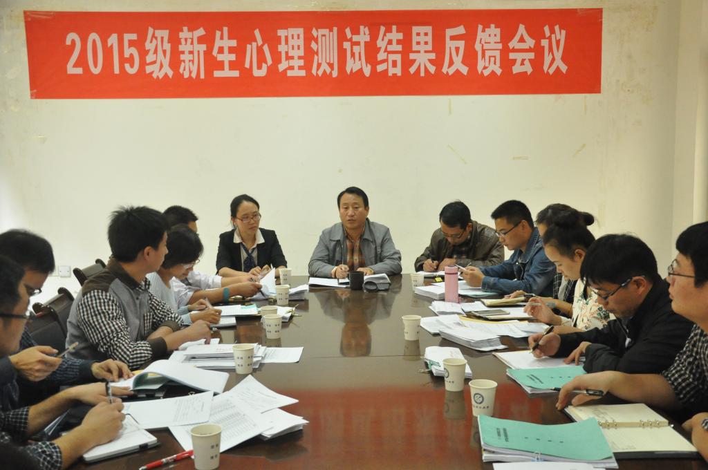 10月15日下午,2015级新生心理健康普查结果反馈会议在大学生素质教育中心会议室召开。会议由学生处副处长涂有胜主持,各学院新生辅导员参加了会议。