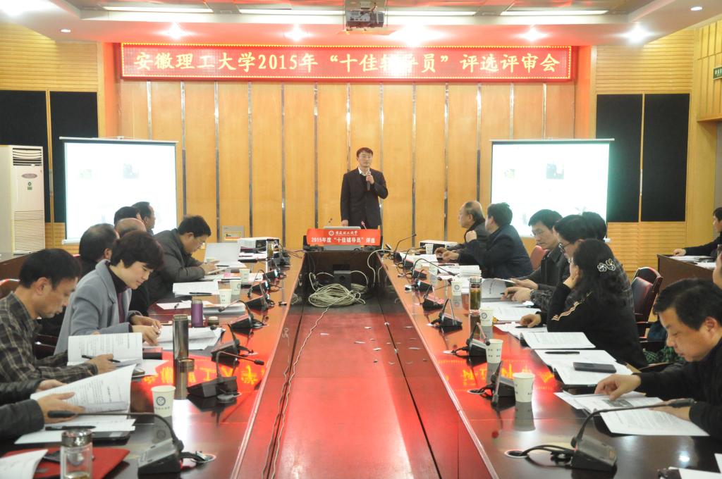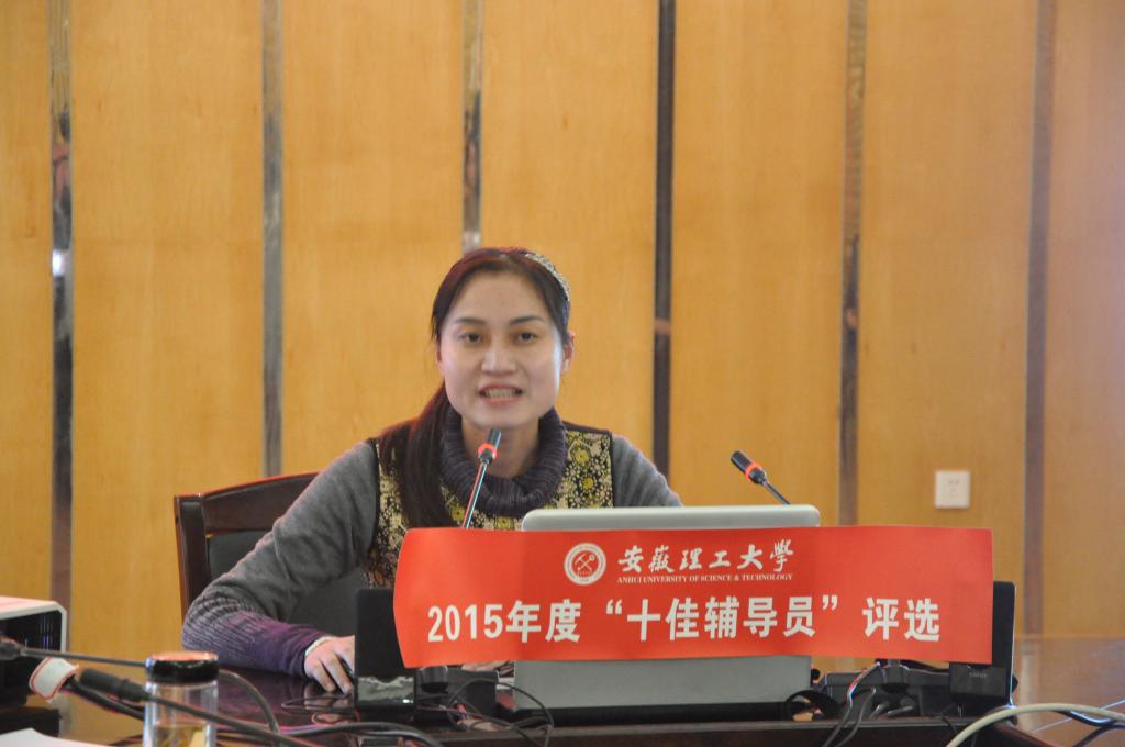 经个人自评和学院初评推荐,共有16位辅导员老师参加校“十佳辅导员”评选,学校根据公开、公平、公正原则,组织专家进行网络评审和现场考评,共评出任少伟、李洁、赵埕萱、杨志华、李攻明、吕金梅、张娜、宫盼盼、张坤、邵飞等10位老师为2015年度安徽理工大学“十佳辅导员”。