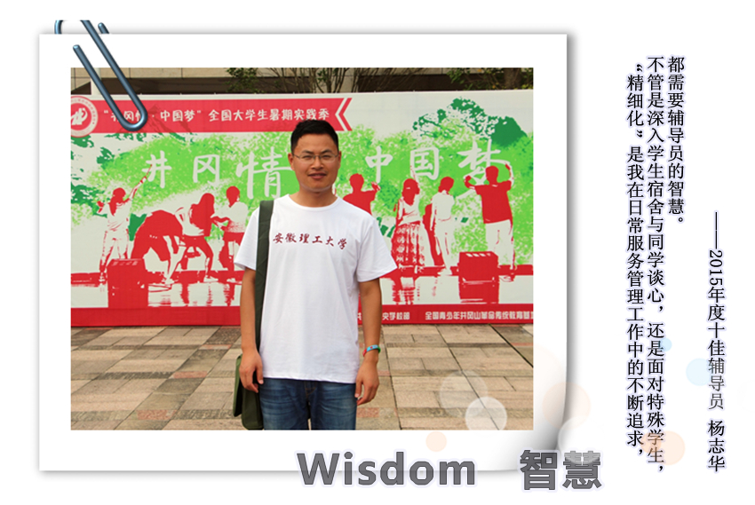 学生的身边有这样一群人,他们岗位平凡,责任重大;他们用心倾听学生心声,用心关心学生成长成才;他们怀揣着梦想,带着信念,用热情和智慧,不断尝试;他们用责任心,耐心,尊重学生,给与学生,激励着学生和自己不断前进。他们就是校2015年度十佳辅导员。