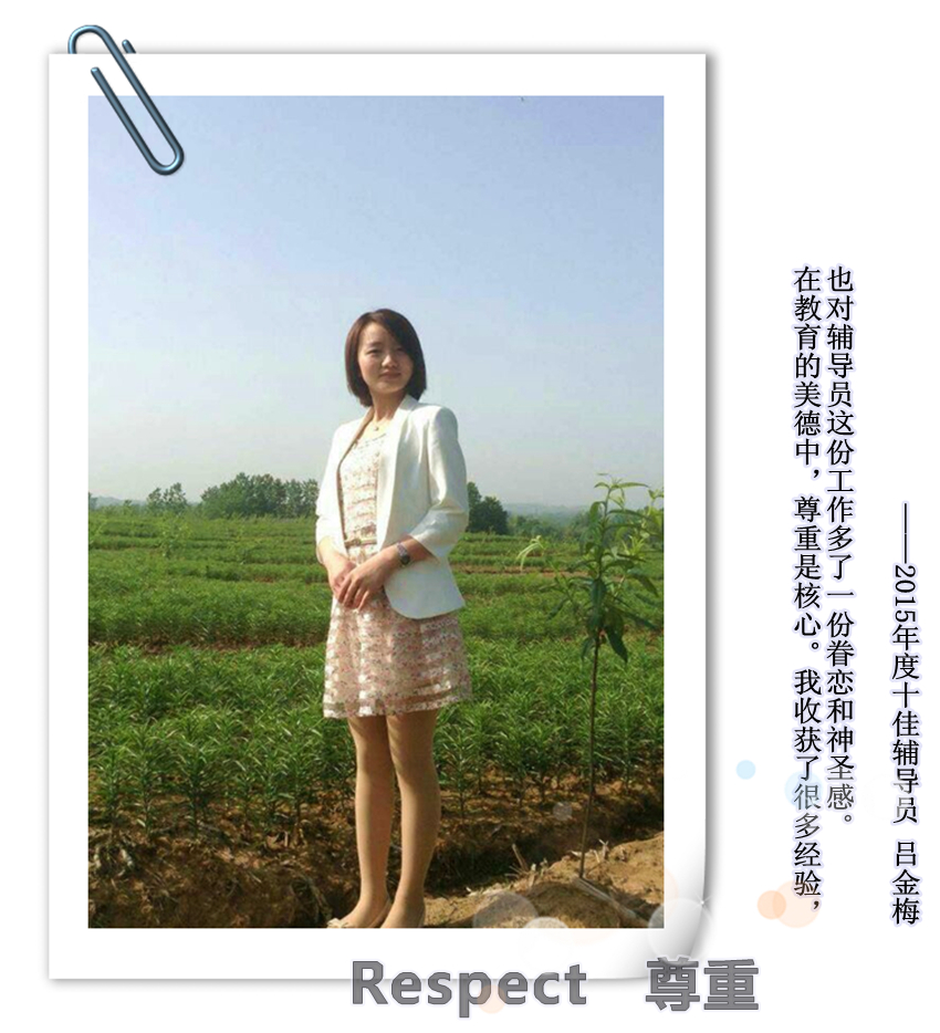 我是“90后”辅导员,入职之初,我总是会担心学生不会把我当成老师。工作后我发现,在教育的美德中,尊重是核心。面对一群并不成熟的学生,我尊重他们的人格、思想和价值观,考虑到天性差异,培养学生的独特发展。互相尊重,不但维系了我和学生之间的感情,同时激发了学生奋发向上的心态。我收获了很多经验,也对辅导员这份工作多了一份眷恋和神圣感。看着充满着青春、活力和激情的学生们,我希望自己无论在工作还是生活中,都可以成为一名能够给学生带来正能量的老师。