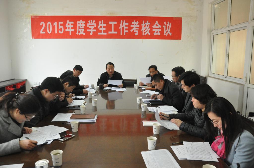 根据学校《关于 2015 年度处级单位工作考核的安排意见》等文件精神,按照《安徽理工大学学院年度综合考核实施办法(修订)》规定的指标体系,在各单位自评和考核领导组平时考核基础上,3月11日下午,学校在大学生素质中心会议室召开2015年度学院学生工作考核暨创新项目评审会议。学生处处长田中良主持会议,学院学生工作考核领导小组成员及各学院副书记参加会议。
