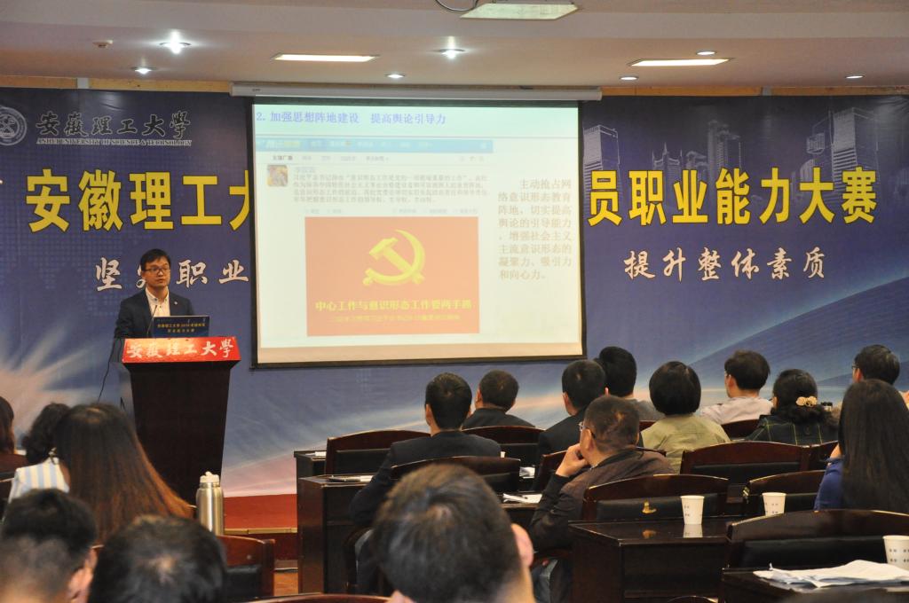 为进一步加强辅导员队伍建设,搭建辅导员学习交流平台,提升辅导员理论水平和业务能力,4月27日下午,以“坚定职业理想,明确岗位要求,提升整体素质”为主题的“2016年辅导员职业能力大赛”决赛在本部图书馆一楼西会议室举行。副校长叶醒狮亲临现场担任评委并发表精彩点评,学生处处长田中良主持比赛活动。来自13个学院的18名辅导员参加了比赛。