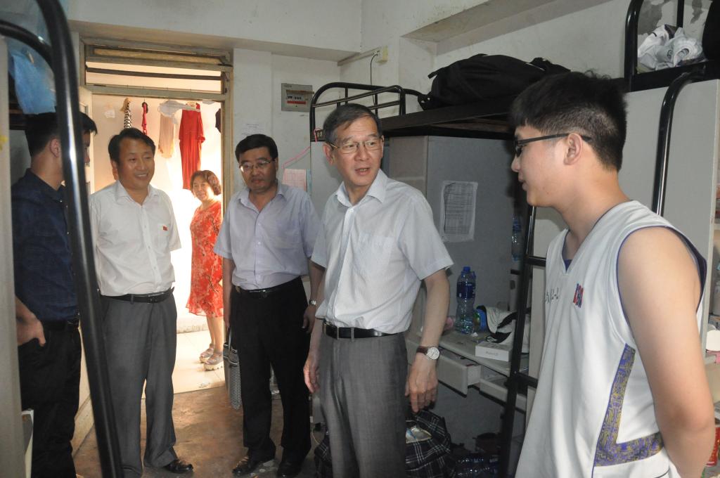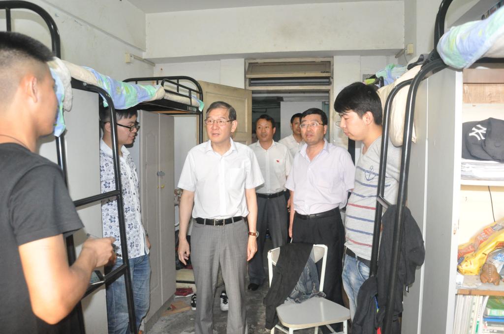 在学生公寓管理站,王其东详细了解了电梯运行、开水供应、毕业生行李托运等情况,对公寓工作人员的辛勤工作表示肯定和感谢,同时,勉励工作人员和学校相关职能部门要竭尽全力帮助毕业生解决困难和问题,努力提供更好更优质的服务,确保毕业生文明离校、安全离校、舒心离校。