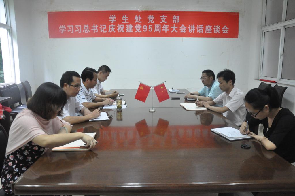 在7月1日和学生一起收看中国共产党成立95周年大会实况,以及2日和3日个人深入自学的基础上,4日上午,学生处党支部在大学生素质中心会议室,召开学习习近平总书记在庆祝建党95周年大会上的重要讲话座谈会。