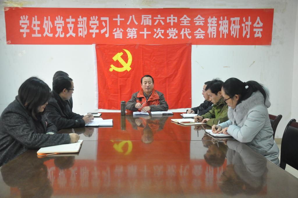 11月28日,学生处党支部组织职工深入学习贯彻党的十八届六中全会及省第十次党代会精神。会议由党支部书记田中良主持,全体党员参加了学习研讨。