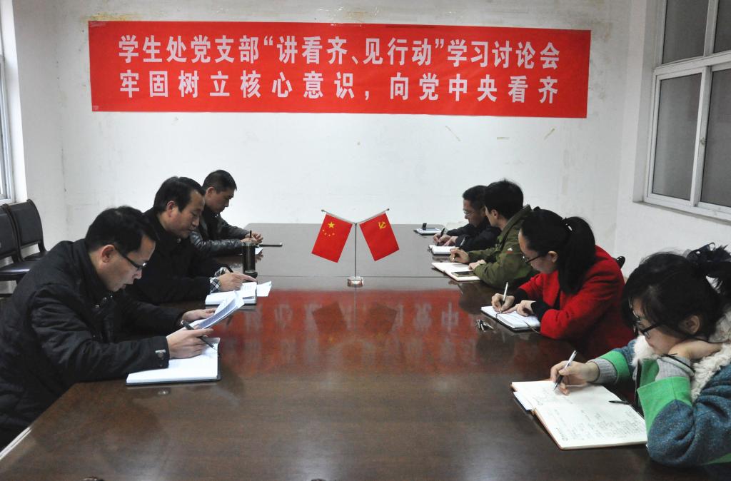 12月12日上午,学生处党支部根据学校和机关党委的统一安排,在大学生素质中心会议室召开了“讲看齐,见行动”专题学习讨论会。会议由支部书记田中良主持,支部所有党员参加了会议。