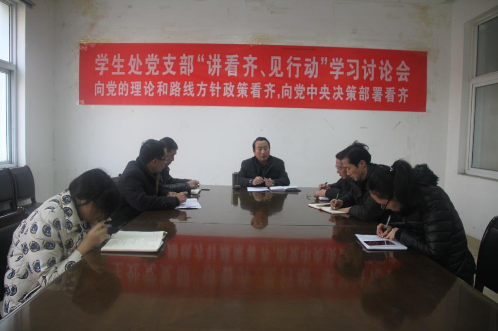 12月19日,学生处党支部在大学生素质中心会议室召开“讲看齐、见行动”学习讨论活动,围绕“向党的理论和路线方针政策看齐、向党中央决策部署看齐”进行专题讨论。