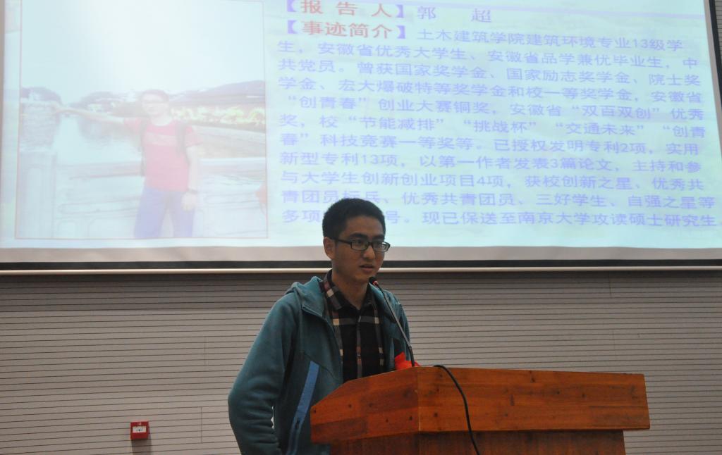 报告会分为先进事迹报告和现场交流互动两个环节进行。优秀学生代表结合自己的实际情况介绍了自己在在大学期间的专业学习、社会实践、科技创新、考研就业以及日常生活等方面的优异表现,分享了自己的心得及感悟,并对学弟学妹们的大学生活提出了合理的意见和建议。在他们身上我们看到了我校大学生坚韧不拔、勇于探索的可贵品质,以及乐观自信、不怕挫折的精神风貌,获得了场下学子的强烈共鸣,并报以热烈掌声。