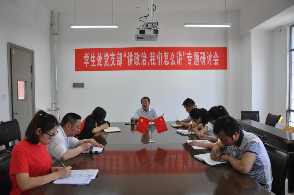 5月23日上午,学生处党支部在大学生活动中心召开了“讲政治、重规矩、作表率”专题教育研讨会,会议由支部书记田中良主持,全体党员参加了会议。