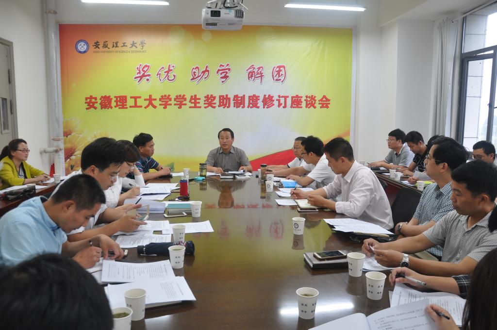 田中良指出,为贯彻落实教育部新修定的《普通高等学校学生管理规定》(教育部令第41号,以下简称《规定》),将以习近平同志为核心的党中央关于高等教育工作的新理念新思想新战略落实到学校教育教学工作中,学校对《安徽理工大学学生学年总评实施办法》、《安徽理工大学学生综合测评实施办法》、《安徽理工大学学生奖学金与资助金评定实施办法》进行修订。在修订中,坚持以教育部新修定的《规定》为依据,以立德树人为根本,从学校实际出发,进一步完善学校奖助体系、明确条件与标准,同时加强监督、优化流程。为增强座谈效果,修改草案已提前四天分发到各学院及相关职能部门。