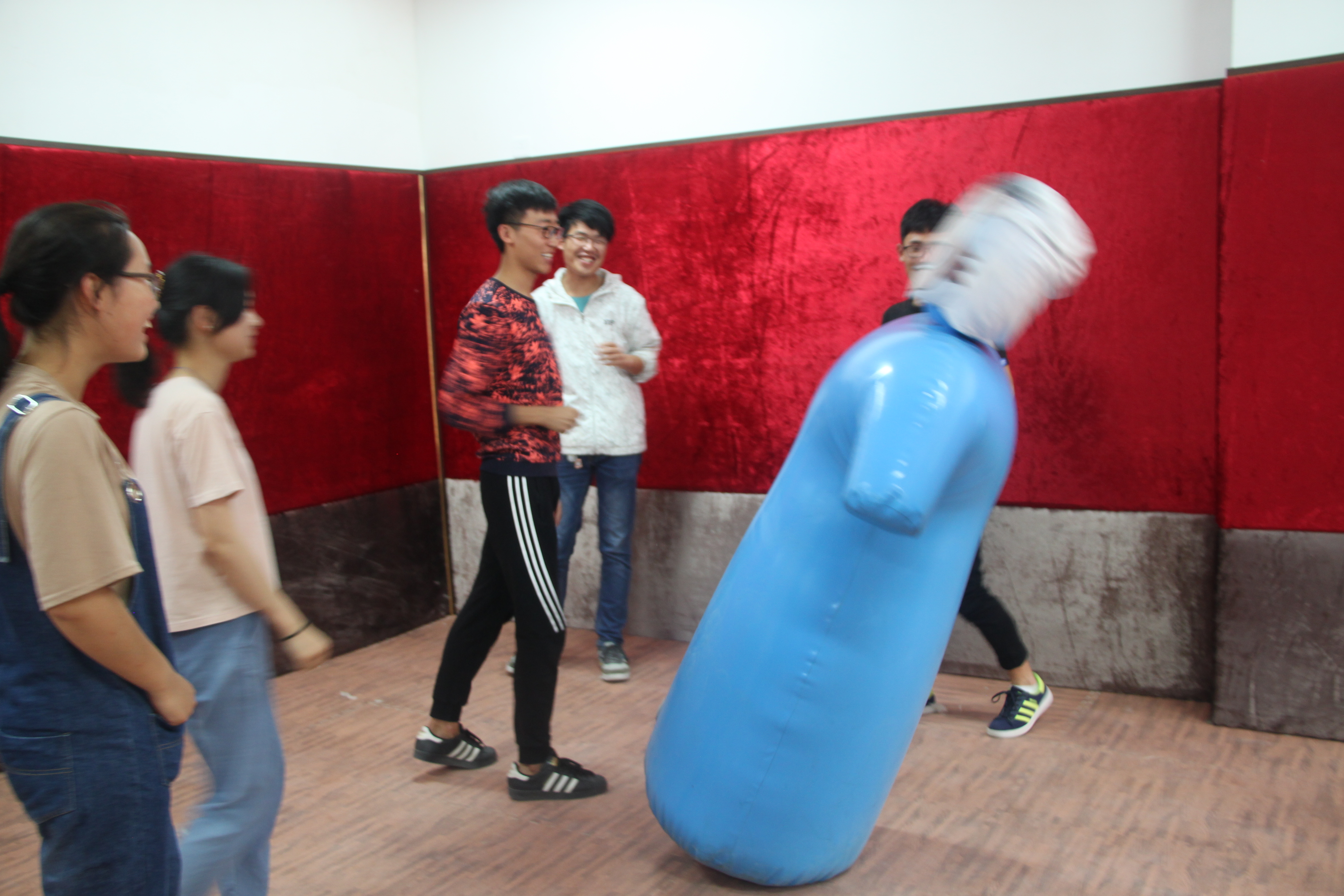 同学们依次参观了阅览室、咨询室、沙盘室、宣泄室、情绪调节室、艺术治疗室、团体活动室等场所和设施。别致的环境和新奇的设施引起了同学们的兴趣。有的同学躺在放松椅上放松心情;有的同学围着宣泄人宣泄情绪;有的同学翻阅起书架上的书籍;还有的同学在微笑墙上寻找自己的朋友。