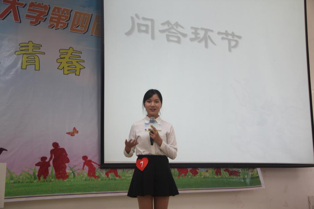 心灵大使选拔赛共分为“自我展示”、“活动展示”和“现场问答”三个环节。“自我展示”环节选手们以新颖独特的PPT或MV进行自我介绍,博得全场阵阵掌声。在“活动展示”环节中,选手们为大家展示了自己组织开展的心理公益活动,选手们或收集微笑展示或开展公益讨论或组织班级活动,各具特色,收效显著。“问答环节”中选手们面对大学生常见的人际交往、学习焦虑等心理案例及社会热点问题时,沉着冷静,分层剖析提出自己的见解与建议。