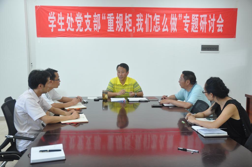 7月12日下午,学生处党支部在厚德馆4楼会议室召开“重规矩,我们怎么做”专题学习研讨会,支部书记田中良主持会议。
