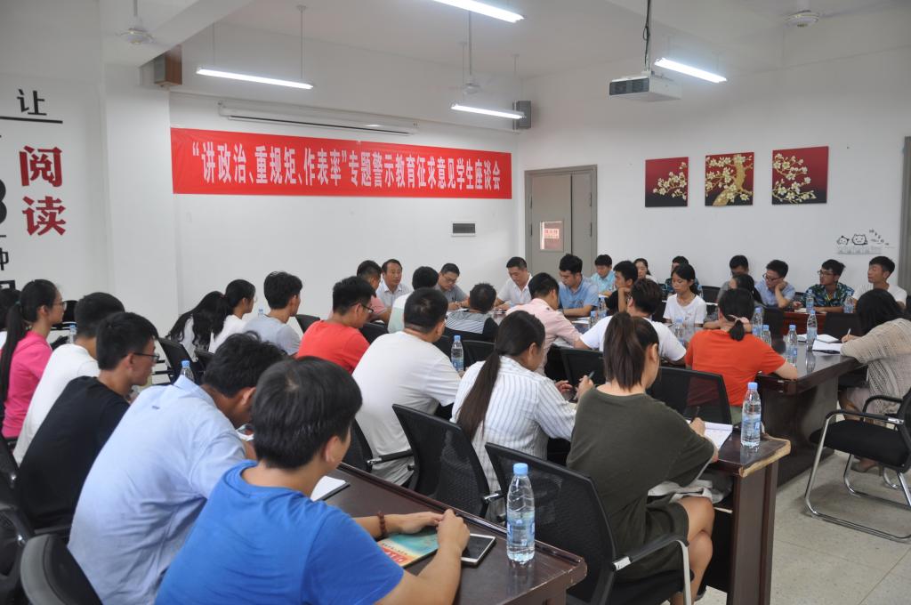 按照学校党委《关于印发<安徽理工大学在“讲政治、重规矩、作表率”专题警示教育中开展专题民主生活会实施方案>的通知》精神,8月16日下午,学校在厚德馆三楼学生处会议室召开了学生意见征求座谈会。受董雨副校长委托,党委学工部部长田中良主持会议。