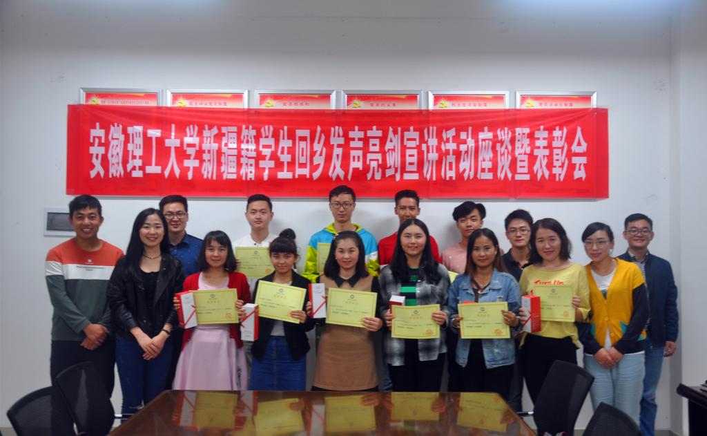 座谈会上,来自医学院、外国语学院、土木学院、电信学院的新疆籍同学分别就返乡发声亮剑宣讲活动进行交流。同学们谈及返回喀什、哈密、乌苏、克州等地之后,在当地社区、村委会的组织下,广大学子利用每周升国旗仪式和深入社区走访等时机,向社区居民、村民介绍自己在内地就学的学习经历、宣传党和国家的惠民政策,倡导民族团结、声讨“三股势力”的反动本质。美合日妮萨·巴图尔等少数民族同学积极利用精通“双语”的优势投身社区、村委会工作,协助开展资料收集整理、调研走访、政策宣讲;约尔妮萨·图尔荪等同学协助社区组织文艺演出,得到了居民的一致好评。