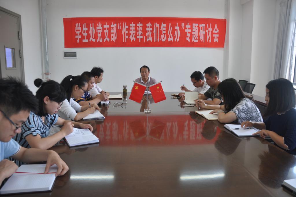 9月18日,学生处党支部在厚德馆4楼会议室举行“作表率,我们怎么办”专题学习研讨会,会议由支部书记田中良主持、支部全体成员参加。