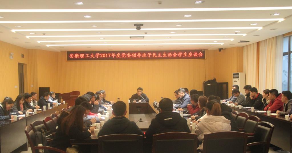 按照学校党委关于印发《安徽理工大学2017年度党员领导干部民主生活会实施方案》的工作安排,1月16日下午,学校在西配楼二楼会议室召开了学生代表座谈会。座谈会由校党委常委、副校长董雨主持。