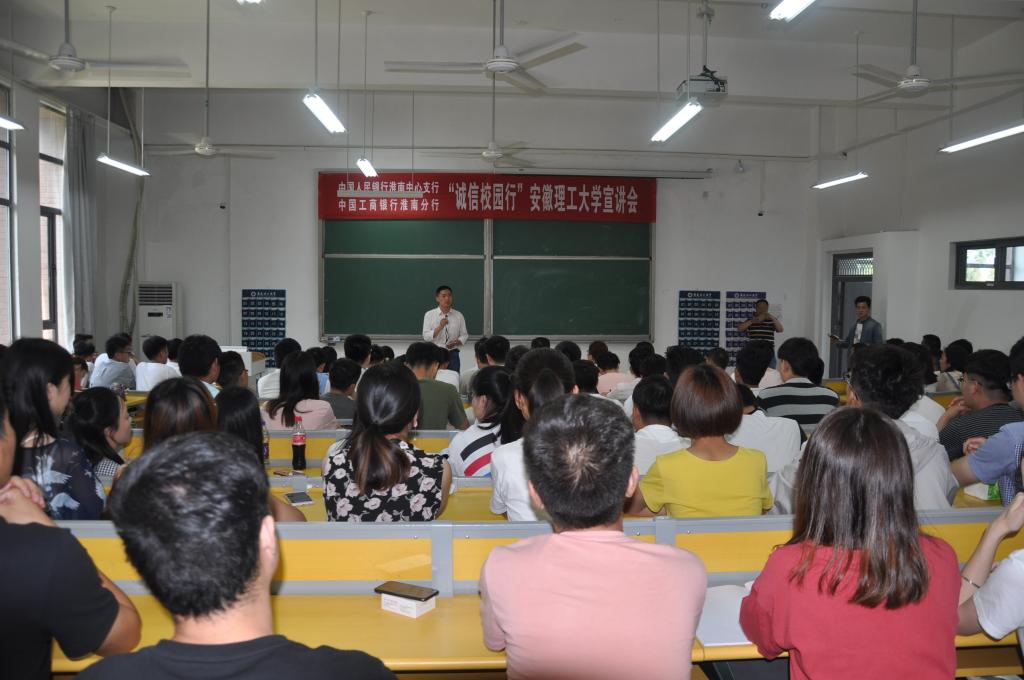 6月30日下午,由安徽理工大学、中国人民银行淮南中心支行、中国工商银行淮南分行共同举办的“诚信校园行”宣讲活动在明理南楼106教室举行。
