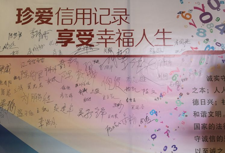 讲座结束后,同学们纷纷在“珍爱信用记录,享受幸福人生”签名墙上签字,做出庄严承诺:要像珍惜自己的生命一样维护自己的信用,积极践行契约精神,按时归还助学贷款,用诚实守信扬帆起航!