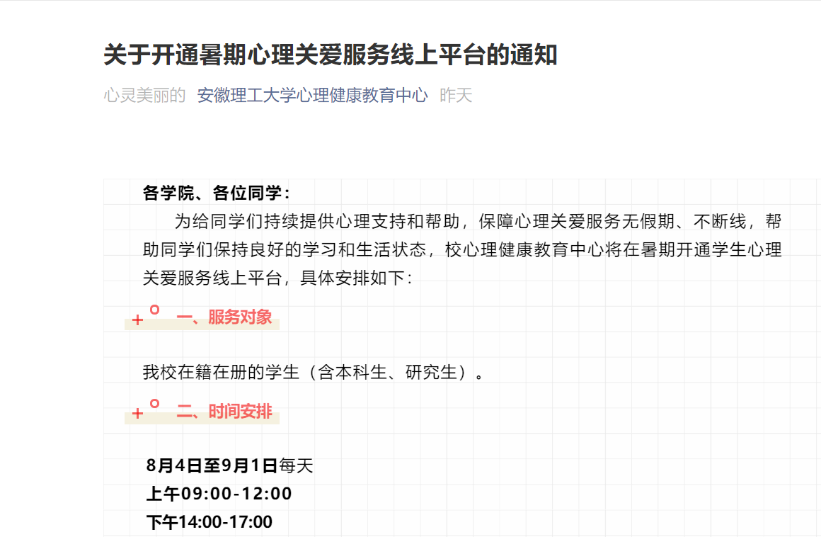 为应对近期国内疫情多点散发形势,减轻疫情可能给我校师生心理健康造成的不良影响,学校大学生心理健康教育中心从8月4日起,组织专兼职心理咨询师在线为全校师生提供心理支持和咨询辅导。