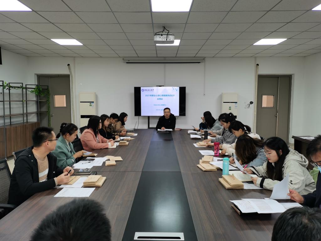 会上,心理健康教育中心通报了2021级新生心理测评工作的整体情况;介绍了测评采用的问卷,对全校及各学院的测评结果进行了分析,并对即将开展的心理回访工作和有关要求进行了布置和强调。