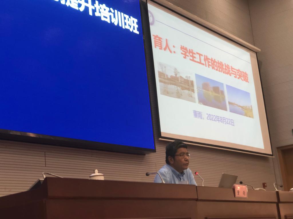 董雨首先对上半年及暑期学生工作给予了充分肯定,并针对此次培训提出了四点要求:一是要充分认识辅导员能力提升培训的意义,把握机会,认真学习;二是要树立终身学习的习惯,静心明志,求真务实;三是要强化学习,注重创新,努力将自己打造成为专业性人才;四是要将科学研究作为自己的立身之本,研究国家方针政策、教育理论,研究身边的学生,在实践中坚守初心,履职尽责。