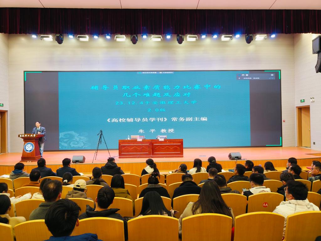 为深入学习贯彻习近平新时代中国特色社会主义思想,落实立德树人根本任务,不断提升我校辅导员队伍的理论水平、专业素养和业务能力,12月4日下午,学校邀请《高校辅导员学刊》常务副主编朱平教授,在舜耕会堂做辅导员素质能力提升专题讲座。会前,校党委常委、副校长董雨亲切会见了朱平教授。全体学工干部近200人通过线上线下相结合的方式聆听了本次讲座。