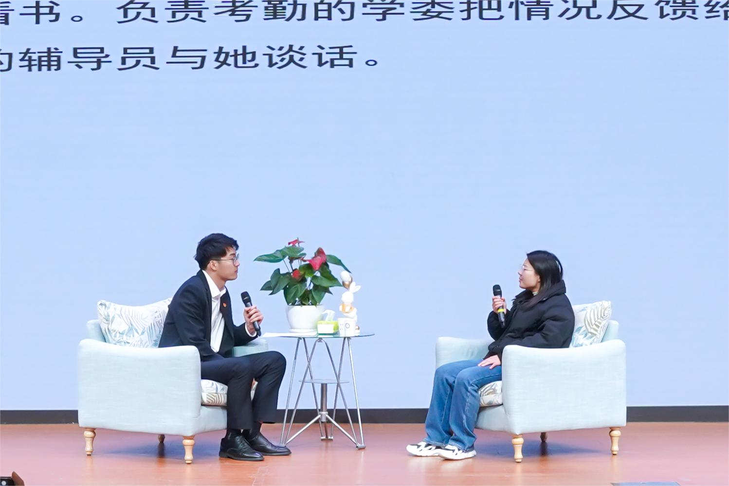 案例研讨环节采取“我提问,你回答”的方式开展,由AB选手围绕案例共同辨析原因、研讨对策、总结规律,现场专家根据案例进行现场提问,要求选手在两分钟内快速准确作答。谈心谈话环节,参赛选手现场针对学生演员面临的问题和困惑,给学生指导性的意见和建议,从而帮助学生走出困境;谈话结束后,选手需结合谈话情况进行简短总结,分析存在问题与改进措施,并回答评委提出的1个问题。