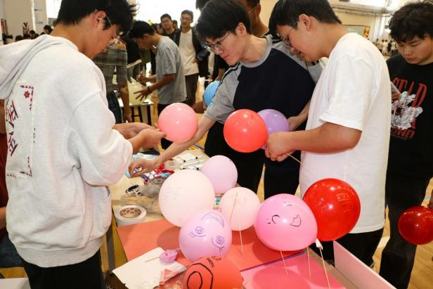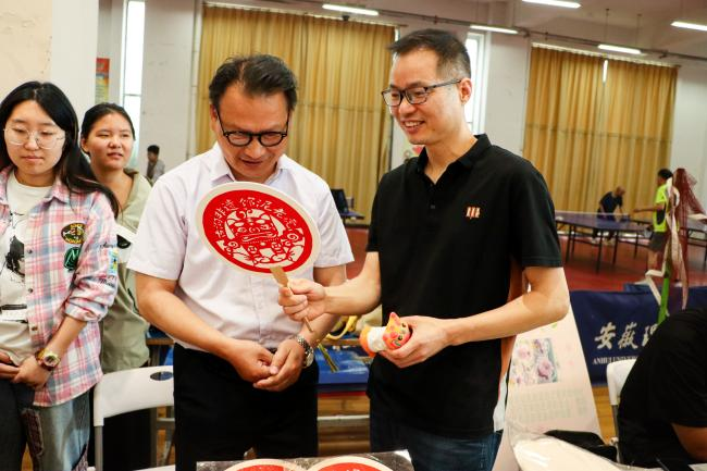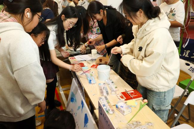 在“画情绪怪兽”活动区,同学们将内心的烦恼、伤心、生气等负面情绪写在气球上,随着气球的破裂,压力也随之消散,现场欢声笑语不断。非遗疗愈活动则带领大家走进淮小虎传统非遗作品的世界,从上色到装饰,每一笔都倾注着专注,让同学们在慢工细作中释放压力,感受着“匠人精神”的滋养。手工漆扇DIY活动中,同学们发挥创意,经过“漆”入水、划“漆”成纹、浸扇上“漆”等步骤,制作出独一无二的漆扇,在创作中收获生活的小确幸。