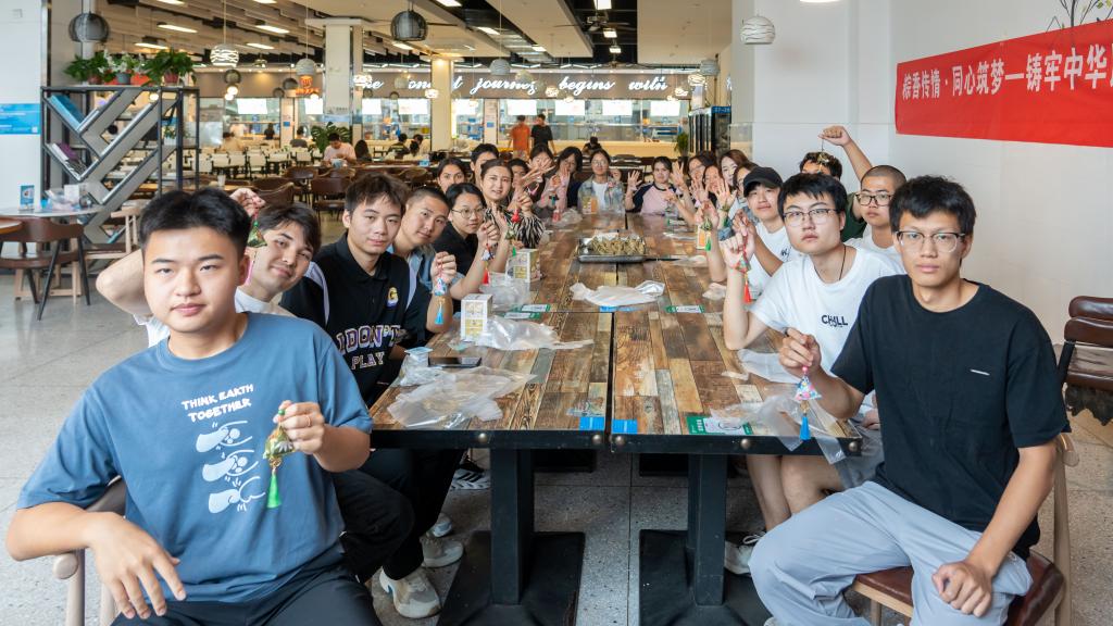 活动现场,同学们一起折粽叶填糯米、裹红枣、缠丝线,一边包粽子,一边交流着各自民族的特色文化,其乐融融。包好粽子,端午节知识竞答火热开启,题目涵盖端午节历史渊源、民俗文化、诗词歌赋等内容,同学们踊跃抢答,气氛热烈。