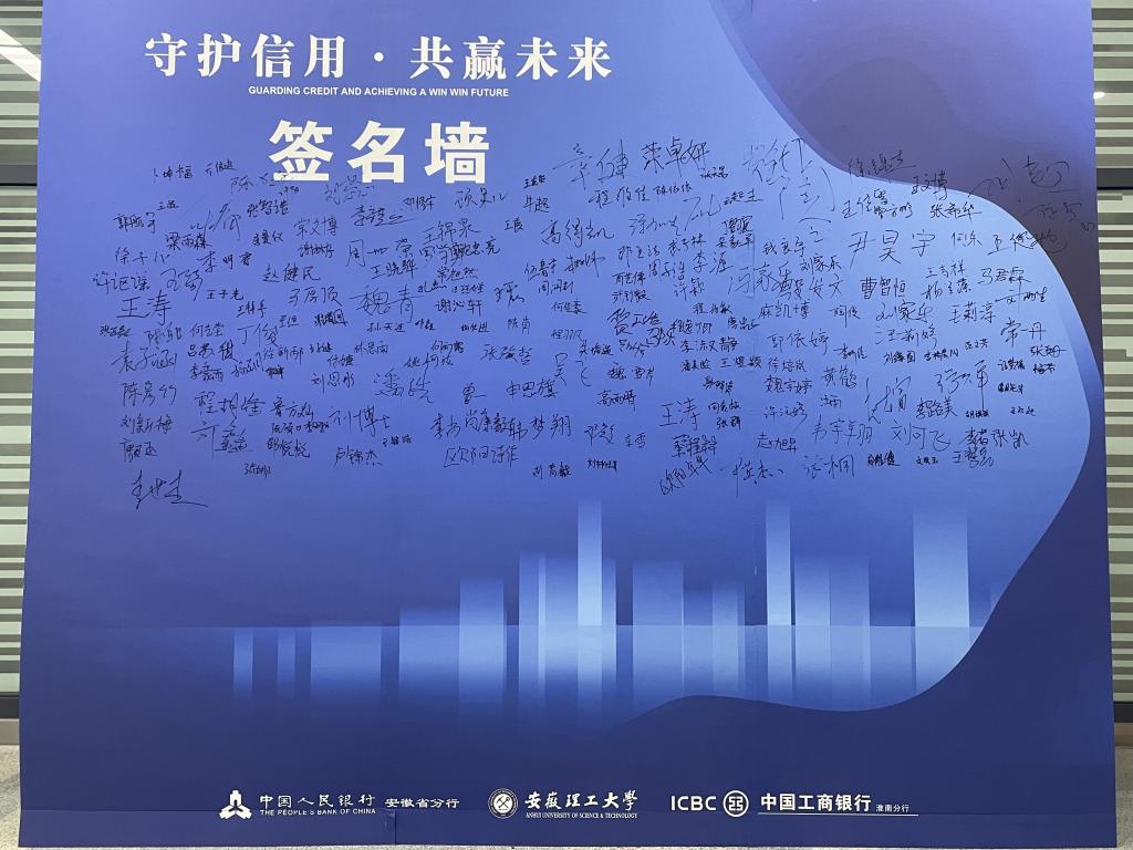 活动以图文并茂的“诚信知识图片展”,展示了个人信用体系建设历程、典型诚信人物故事等,吸引师生驻足学习。活动现场设置了“诚信签名墙”,参与人员依次签名、合影,身体力行践行诚信。