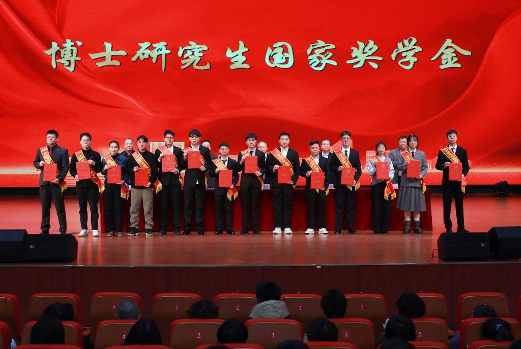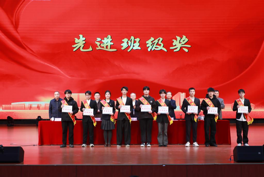 余玉刚宣读了学校2025年度学年总评、本科生国家奖助学金、研究生国家奖学金和文明宿舍的表彰结果。与会校领导为受表彰的先进班级代表、文明宿舍代表、优秀学生干部标兵、三好学生标兵、优秀学生奖学金、国家励志奖学金、本科生国家奖学金、硕士研究生国家奖学金、博士研究生国家奖学金以及A类竞赛国家级特等奖、一等奖、银奖,全国性体育竞赛第一名等获得者代表颁奖。