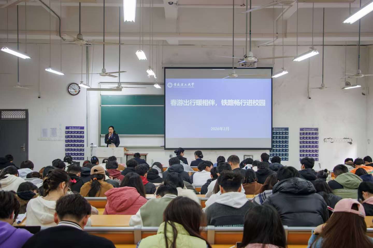 宣讲环节中,高铁站工作人员唐怿、李娟围绕清明车次调整、学生票核验、12306购票技巧等学生关注的内容进行细致讲解,并结合典型案例普及站台安全、违禁品规定及出行防诈骗知识。现场还设置了互动问答与趣味抢答环节,同学们踊跃参与,在轻松氛围中掌握了实用信息。