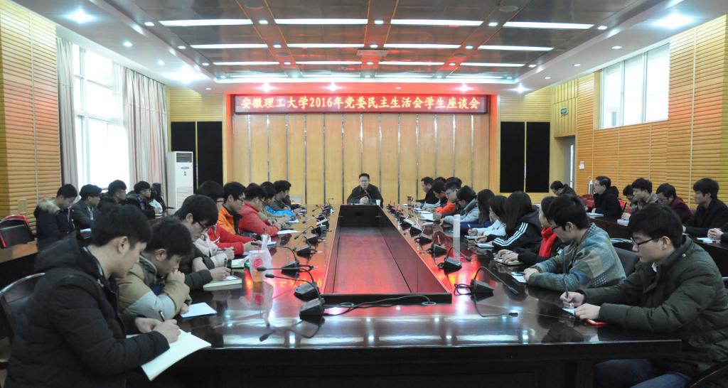 为广泛征求学生对学校各项工作的意见建议,12月29日下午,学校在校本部图北会议室组织召开了学生代表座谈会,征求学生对校级领导班子2016年民主生活会的意见和建议。校纪委书记周峰主持座谈会并讲话。