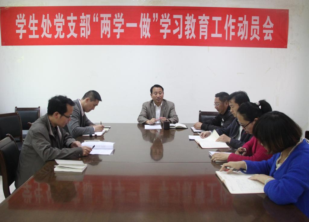 为提高认识、统一思想,将“两学一做”学习教育抓严抓实,5月16日,学生处党支部在大学生素质中心会议室召开支部大会,就“两学一做”学习教育进行了动员部署。