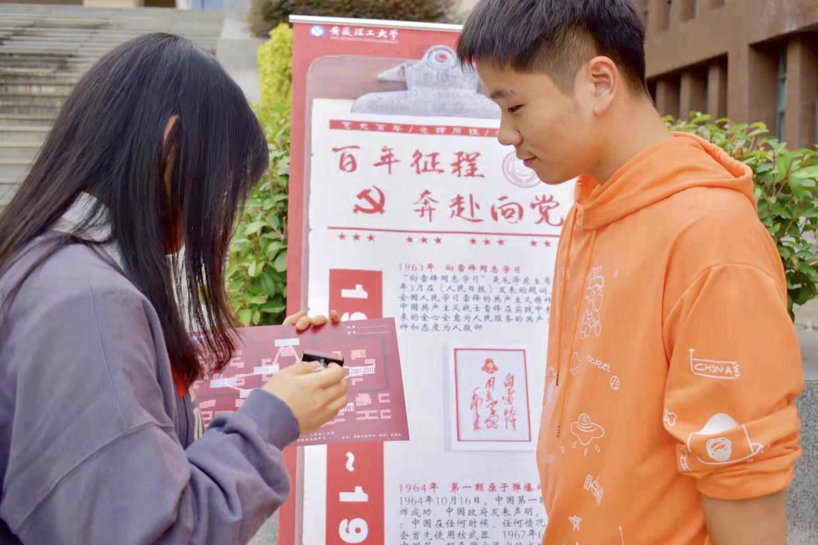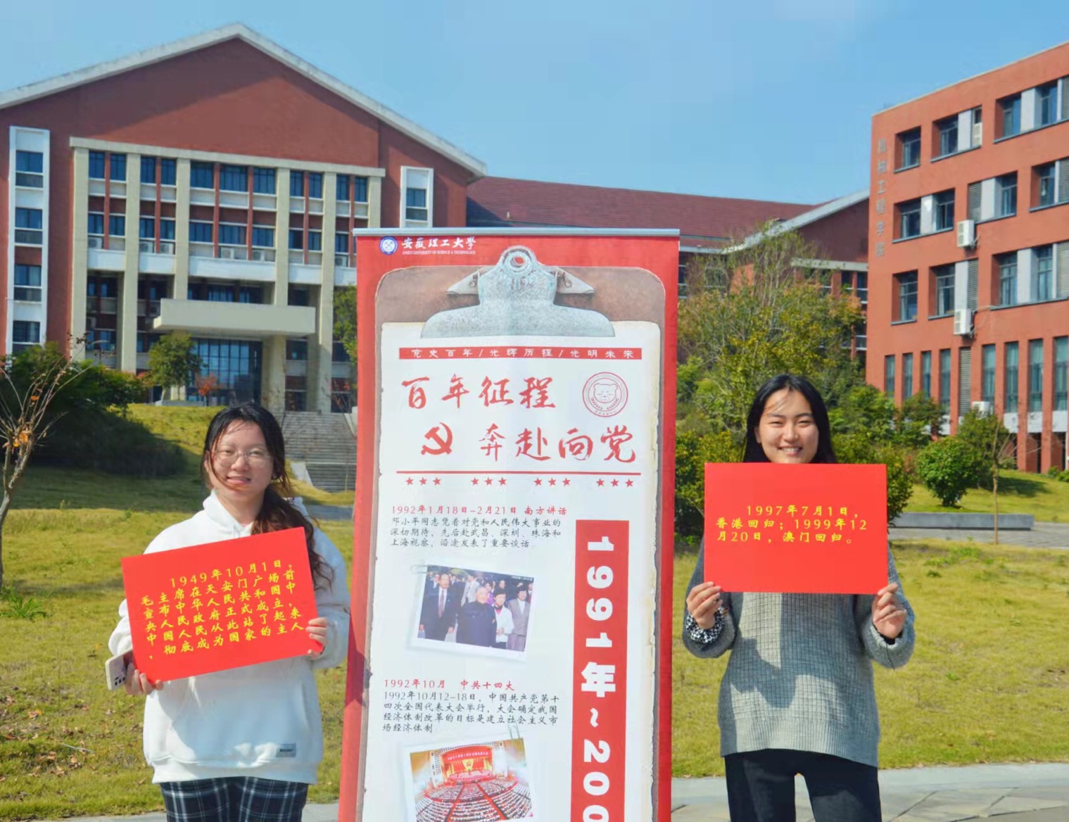 活动中,同学们一边研究着手里的路线图,一边讨论着校园的风景,精神抖擞、阔步向前,每当路过党史内容题板时,他们便驻足停留,认真思考。医学院药学2021级赵雅静同学说“作为一名刚刚走进安理的学生,参加这次活动不仅锻炼了身体,学习了知识,还欣赏了校园美景。我爱安理!我爱祖国!”校易班学生工作站杨超同学在她的空间里这样写到“这是一个又红又温情的活动。在整理党的百年历程内容时,我深深的感觉到今日的幸福来之不易,未来定会加倍努力学习,用实际行动传承红色基因。”