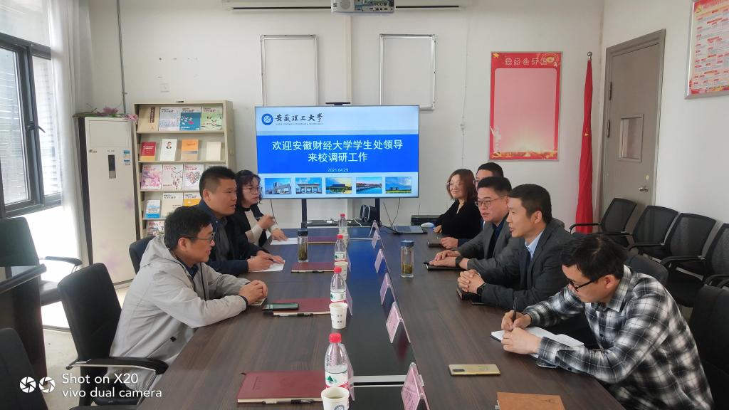 4月29日上午,安徽财经大学学生处处长顾思伟一行赴我校进行易班平台建设调研。学生处处长赵宁、学生处相关工作人员、校易班中心兼职指导教师参加了此次调研。