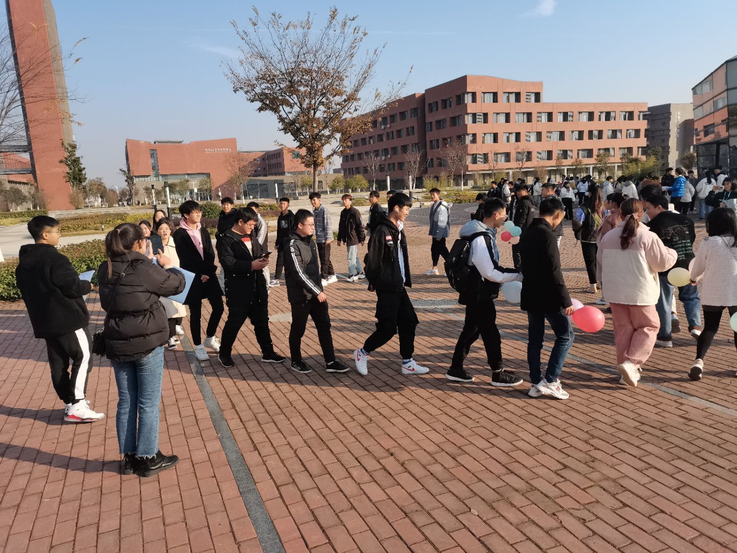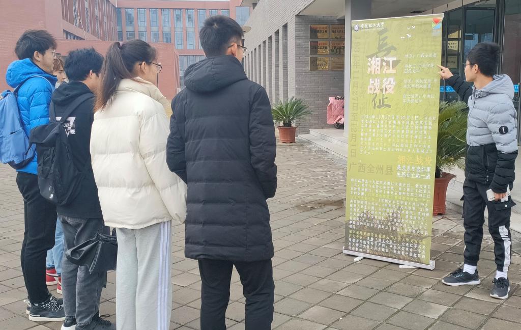 活动中,同学们共分为10支队伍,在每支队伍负责人的带领下,按照指定路线,共同奔赴至至诚体育场、明理楼、崇信楼、崇仁楼四个设有红色长征标志的地点进行打卡,以此模拟红军长征路途。