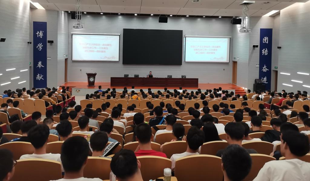机械工程学院420多名新生在舜耕会堂主会场听课,其他新生在教室通过观看直播的方式进行了同步学习。