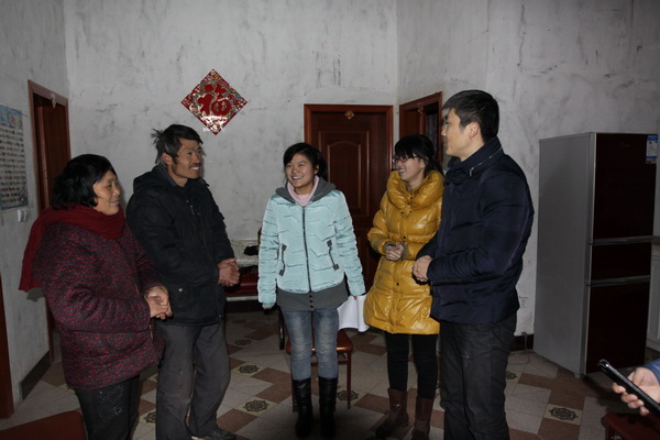 1月27日早七点,天刚蒙蒙亮,伴着2015年的第一场雪,学院各年级辅导员在范洪喜的带领下,顶着刺骨的寒风和纷纷飘落的雪花正式开始2015年寒假学院集中家访工作。本次集中家访共走访了蚌埠、宿州、徐州、淮北四个地市,五个区县共12名家庭经济困难和学习困难学生家庭。工作组给每名学生家庭带去了米、油等生活必需品,为家庭经济困难的学生家庭送去了慰问金。同时,学院领导详细询问学生家庭现状和当前面临的主要困难,鼓励学生克服暂时的困难,用自己的实际行动减轻父母的负担。带班辅导员与家长就学生在校表现情况进行沟通交流,同时介绍相关资助政策以帮助困难学生家庭渡过难关。