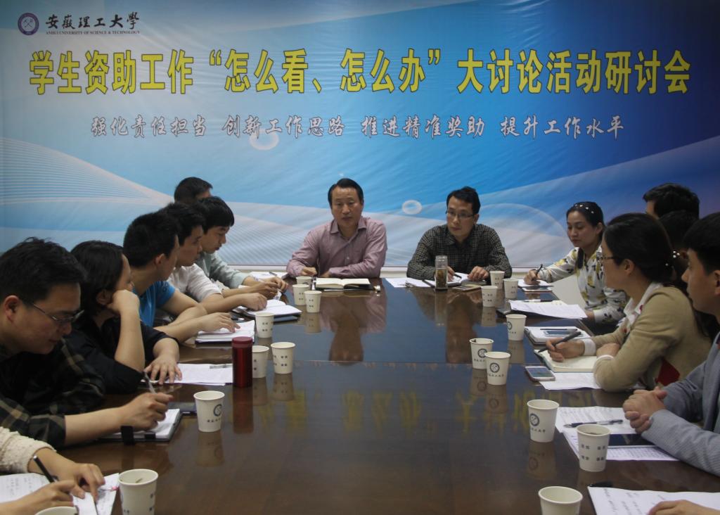 4月14日下午,学校在大学生素质教育中心召开了学生资助工作“怎么看,怎么办”大讨论学生工作干部专题研讨会,学生处处长田中良,副处长陈楠,部分学院党委副书记以及各学院资助工作联系人参加了讨论活动,会议由学生处副处长涂有胜主持。