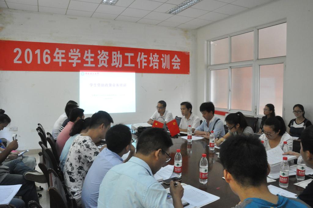9月12日下午,学校在学生处会议室召开2016年学生资助工作培训会,全校14个学院的资助工作联系人以及新任学生辅导员近30人参加了此次会议。